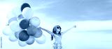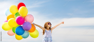 happy girl with colorful balloons