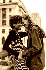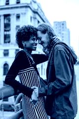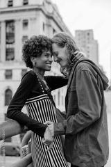 Embrace between lovers on a city street, showcasing affection