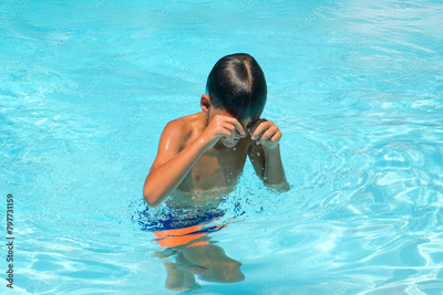 Boy eyes stung by pool chlorine. Eye irritation for chlorine