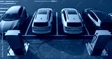 Generic electric car charging at station dock point in parking lot near shopping or office building. City street power hub providing eco-friendly sustainable supply for EV vehicle