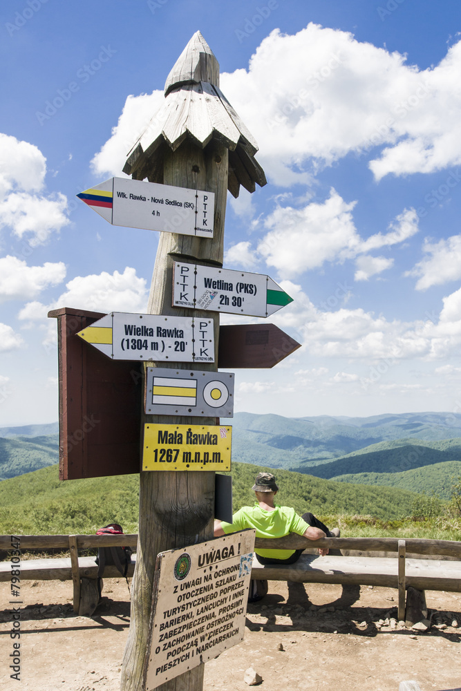 Oznaczenia szlaków na Małej Rawce, Bieszczady