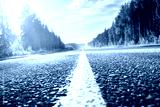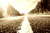 road in sunny forest (shallow DOF)