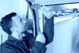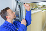 Man installing a garage door