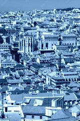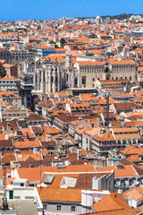 Bird view of Lisboa downtown. Baixa, Rossio and Chiado rooftops