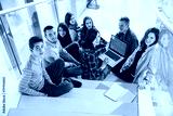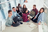 Happy teen girls and boys on the stairs school or college