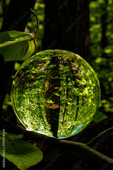 Springtime forest with sun shining through crystal lensball leaves and branches. Nature, forestry, Trees, habitat, environment and sustainability concepts, sustainability picture, stock photo, sunstar