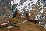 Gergeti Trinity Church (Tsminda Sameba), Holy Trinity Church near the village of Gergeti in Georgia, under Mount Kazbegi Stepantsminda
