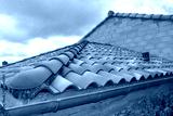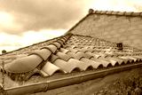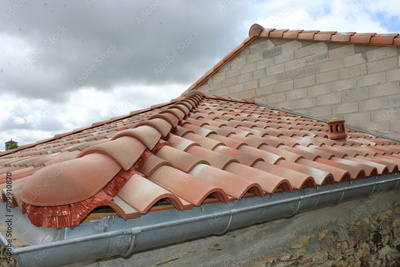 Toiture en tuiles canal ou romane, gouttière en zinc gris