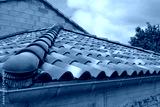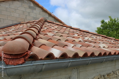 Toiture en tuiles canal ou romane, gouttière en zinc gris