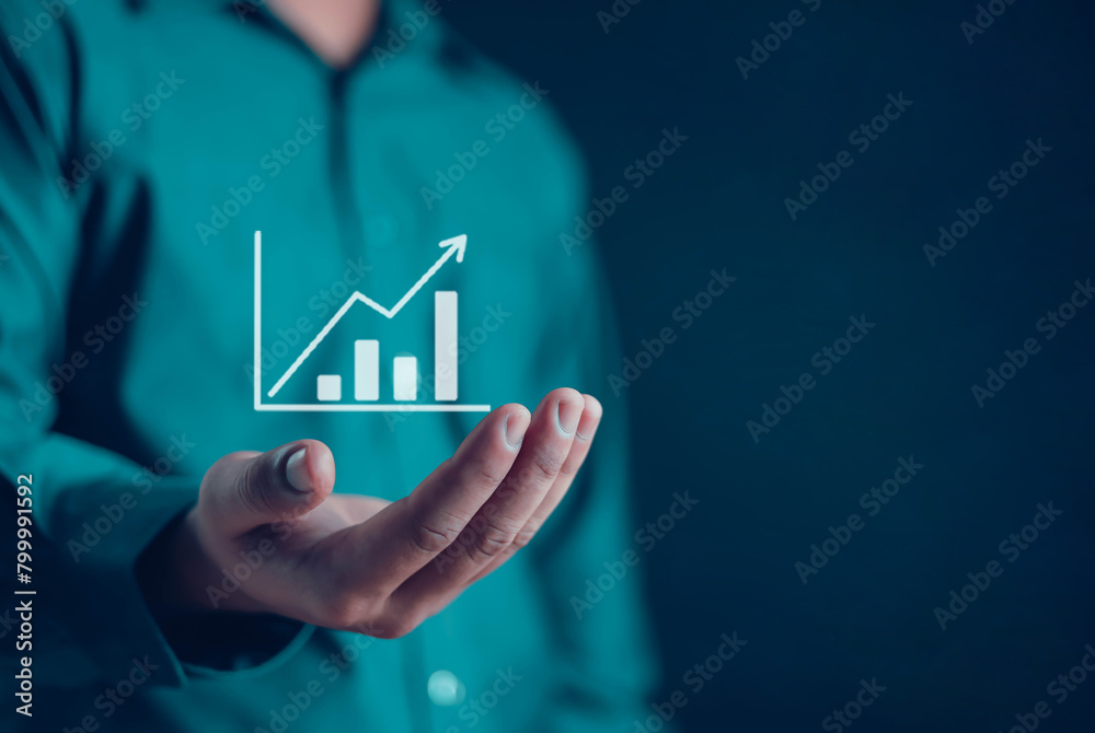 Businessman working with stock investment strategy, stock market, business growth Progress analysis data of trading that has the graph stock. invest in trading