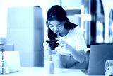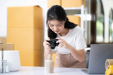 Young Asian business entrepreneur using a compact digital camera take a photo of product for upload to website online shop.