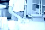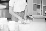 Small business entrepreneur woman packing product in mailing box for shipping from online store. Business online shipping and delivery concept.