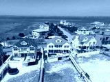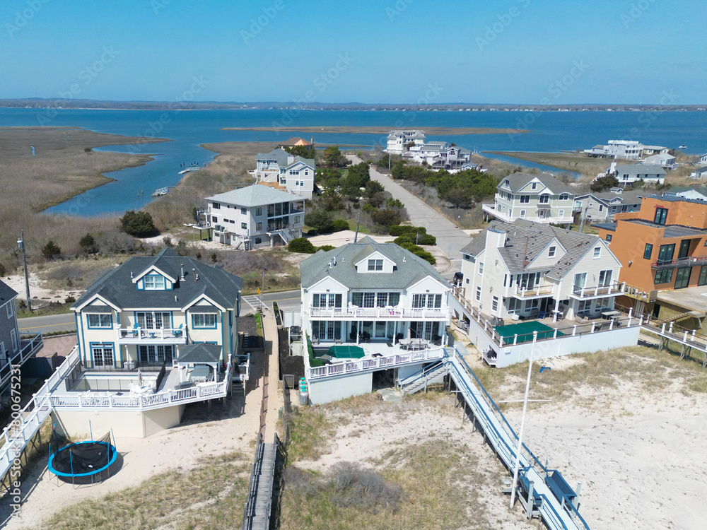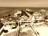 Aerial view of luxury homes along the beach in the Hamptons Long Island New York