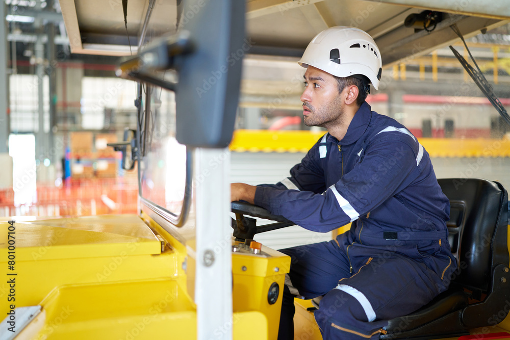 engineer or worker driving a car in the factory