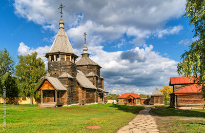 Old Russian wooden church in Suzdal, Golden Ring of Russia