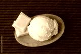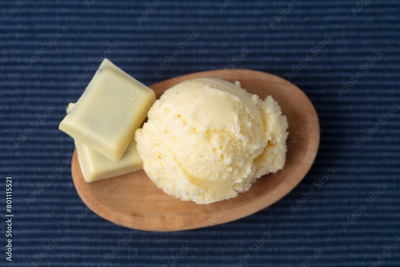 Frische Kugel selbstgemachtes weißes Schokoladeneis von oben