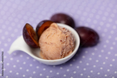 Frische Kugel Zwetschgeneis mit frischen Zwetschgen