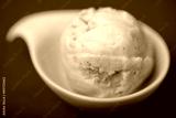 Eine frische Kugel selbstgemachtes Vanilleeis mit Cranberry-Variegato