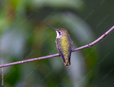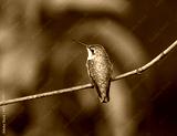 close up on ruby throated hummingbird standing on tree branch