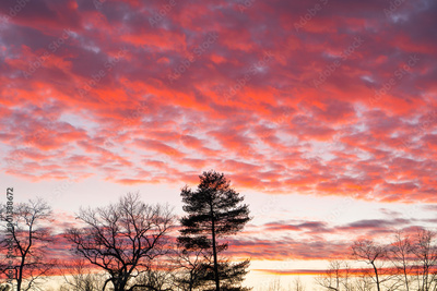 landscape of dramatic red sky and cloud during sunset