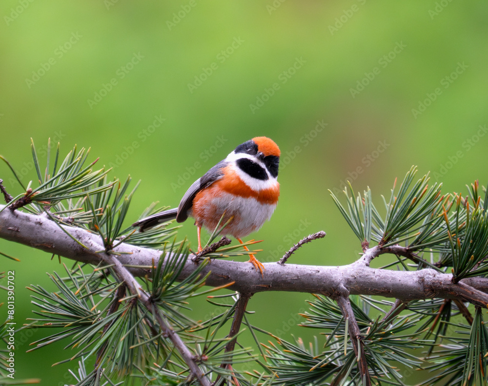 Black-throated Bushtit standing on tree branch