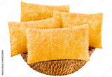 cesta de palha com pastel de feira recheado isolado em fundo transparente
