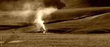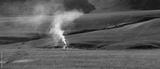 Traditional nomad dwelling - a yurt at the foot of the plateau hills on a summer morning