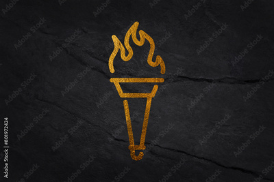 Torch icon. Fire symbol olympic games. Color flaming logo. Vector illustration flat design. Isolated on white background. Sign of sports competitions.