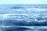 Evening sunset above sea. Riplpe sea ocean water surface with small waves. Sea water foam splashing. Beautiful nature seascape.