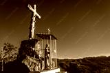Catholic crosses and virgin on the top of a mountain in the valley of Bravo state of Mexico