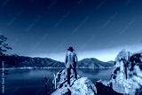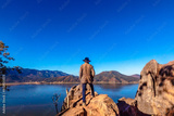 Lonely and adventurous person in front of a valley with a lake in the valley of Bravo state of Mexico