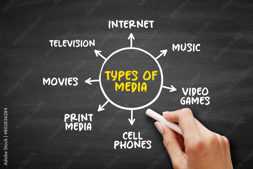 Types of media mind map text concept for presentations and reports