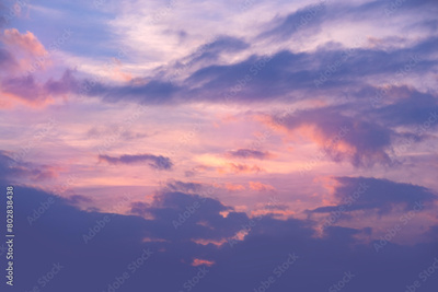 beautiful sunset, pink and purple sky with gradients, dark clouds, concept transcendence, seasonal change of weather, Idyllic evening, Heaven and infinity