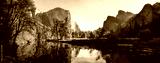 Panoramic scenic view of the Yosemite Valley in the Yosemite National Park, California USA