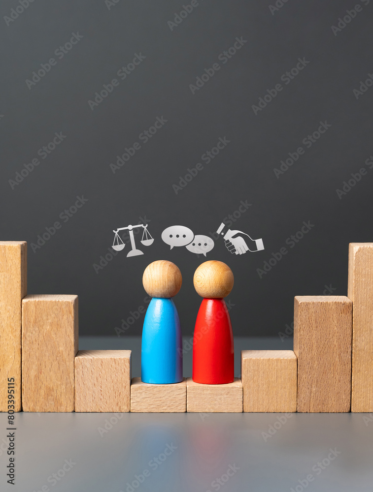 Go down to resolving the dispute. Negotiate as equal parties. Willingness to make concessions. Come down from the heights of pride and be open to new proposals. Justice.