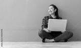Lifestyle women freelance enjoy working laptop . Lifestyle Concept.