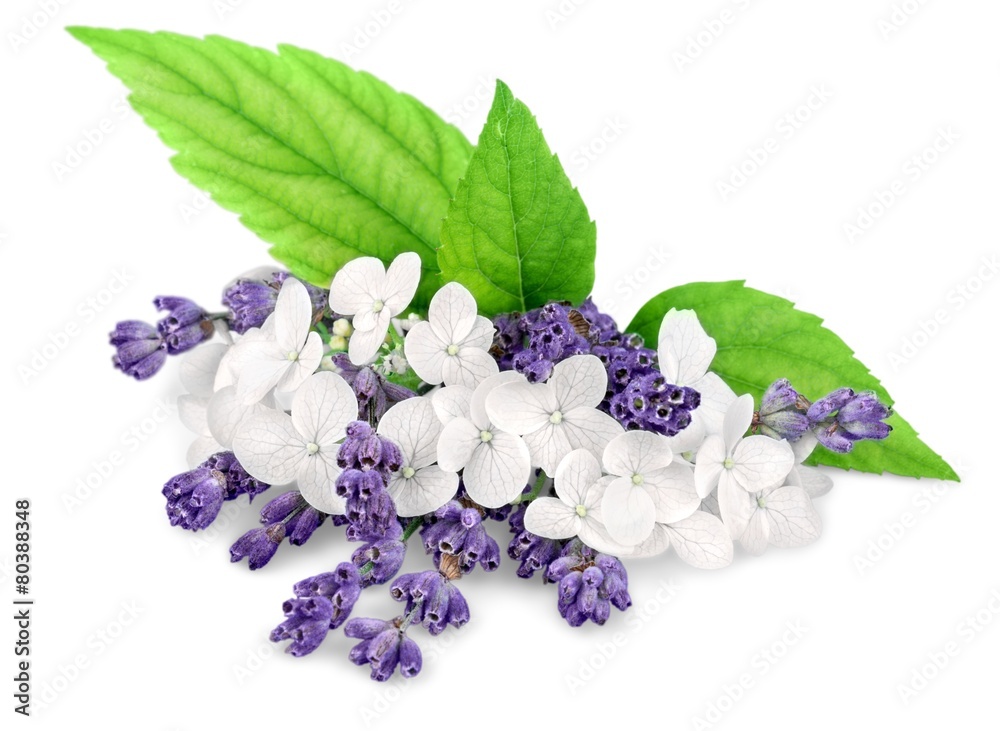 Flowers. Bunch of lavender nd jasmine flowers on a white