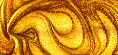 Beautiful abstract golden liquid paint background, beauty gold backdrop texture. Metallic gold paint, art design. Yellow shimmering surface close-up. Golden bright glitter texture, macro shot