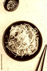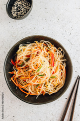 Vegan Funchoza salad. Asian salad with fresh vegetables