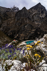 panormaic view of laguna paron in the snow-covered andes in the Huascarán national park in peru