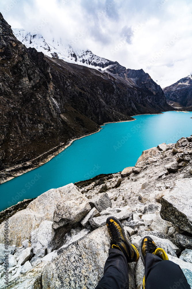 panormaic view of laguna paron in the snow-covered andes in the Huascarán national park in peru