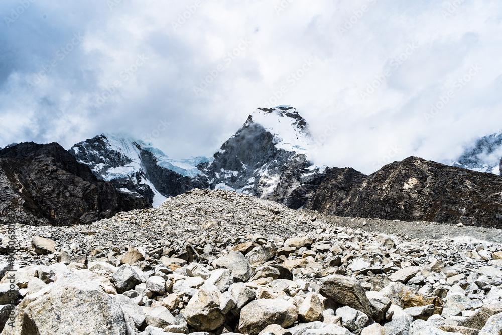 panormaic view of laguna paron in the snow-covered andes in the Huascarán national park in peru