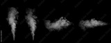 Includes close-up shots of abstract white steam or smoke rising upwards. From humidifying spray isolated on black background.