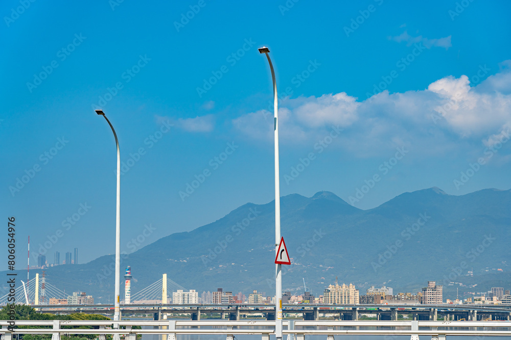 Street view on Taipei bridge, a bridge link New Taipei City to Taipei city, Taiwan