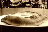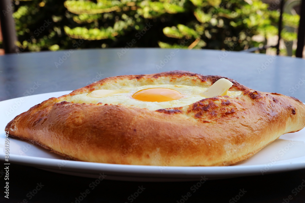 Plate of Delectable, Adjarian Khachapuri, a Cheese and Egg Filled Traditional Georgian Bread