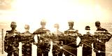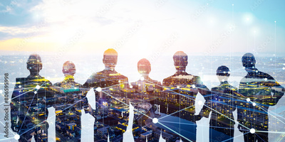 Group of multinational businesspeople and communication network concept. Wide angle visual for banners or advertisements.