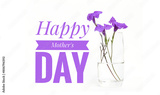 Happy Mother's day card background idea, purple flower in glass with happy mother's day banner isolate on white background