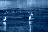 Snowy egret, egretta thula, disheveled white heron in Valle de Bravo state of Mexico lake