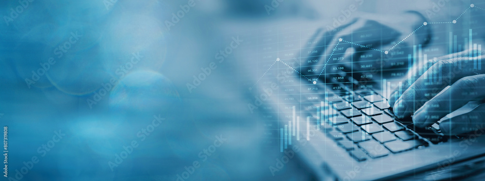 Financial report with business graph growth chart, finance and investment, business analytics, accounting or banking concept