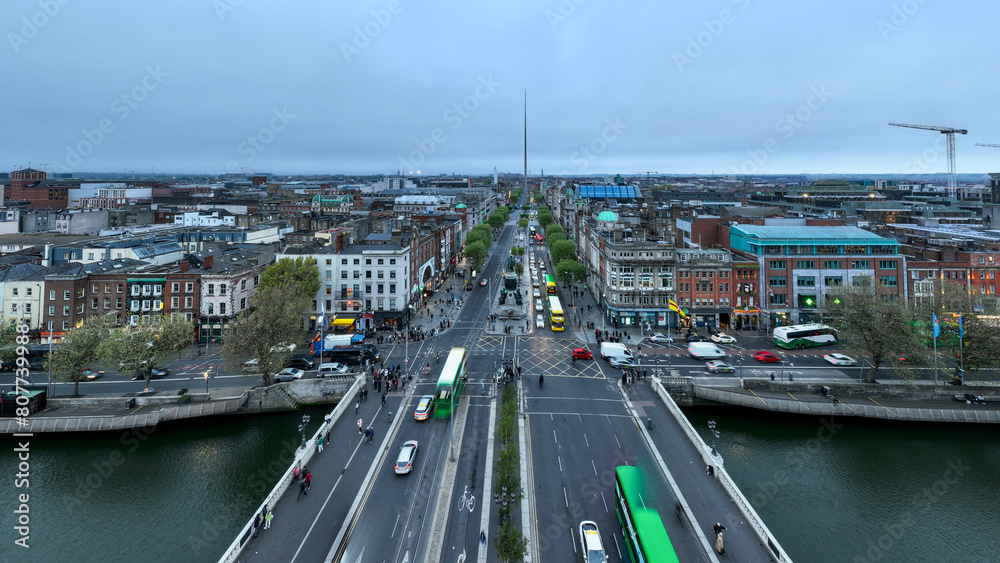 Aerial view of famous O'Connell Street with Spire in Dublin